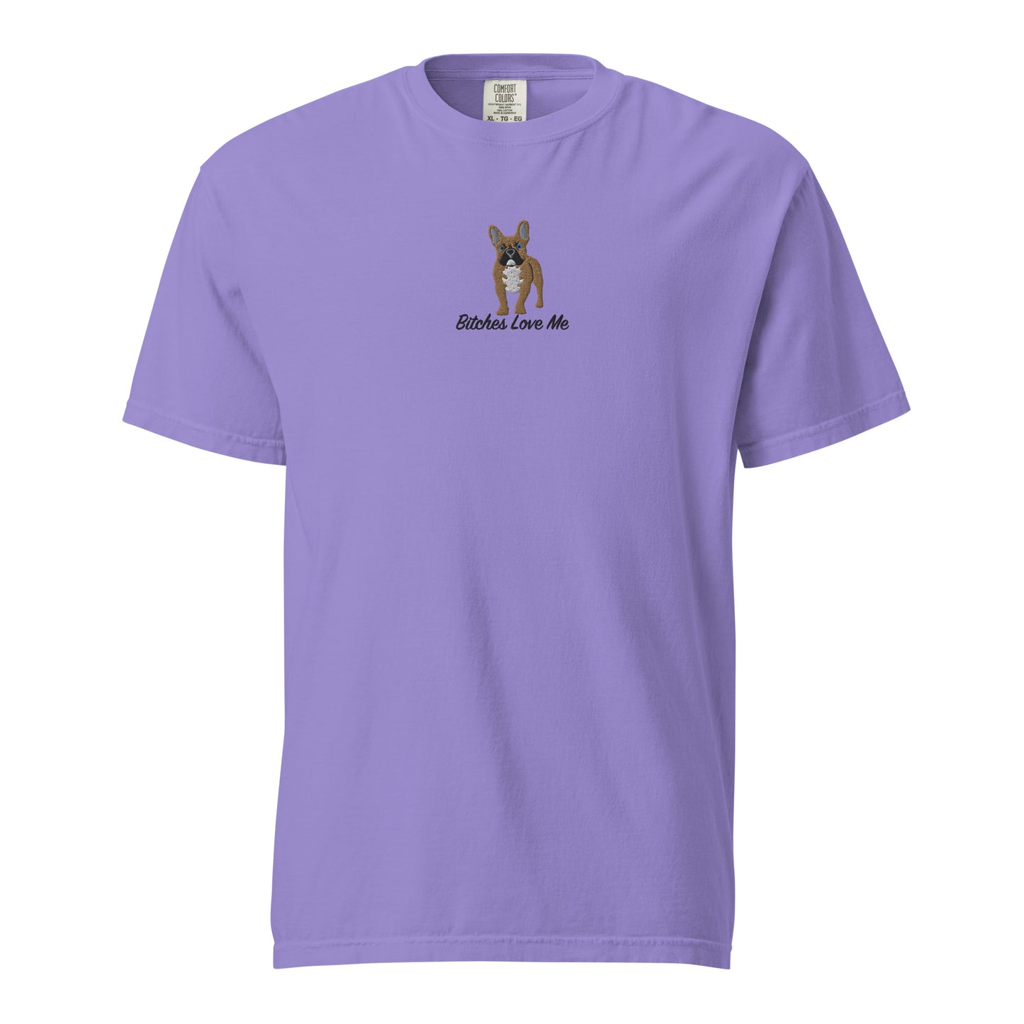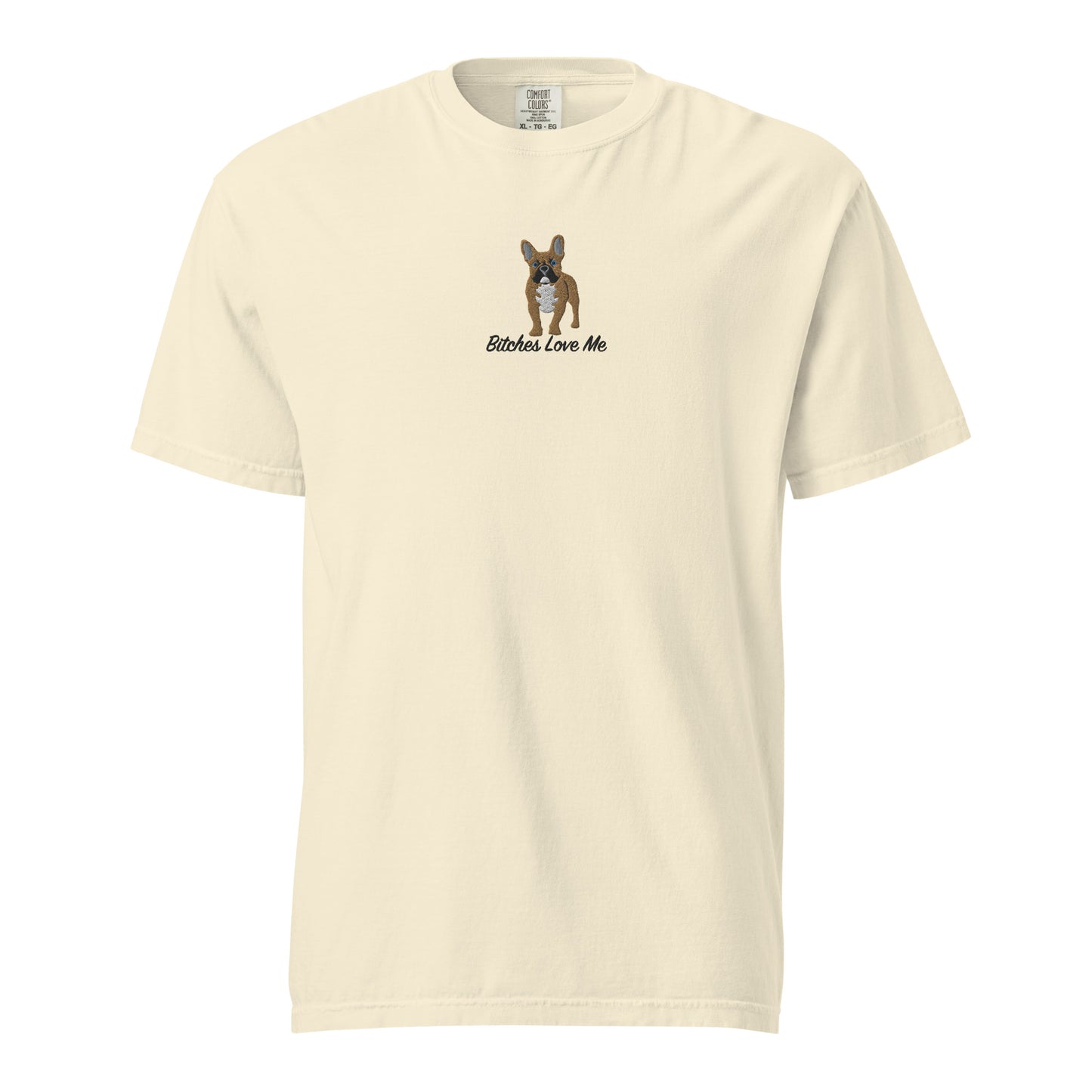Show off your love for Frenchies and a sharp sense of humor with our MoeSews embroidered shirt featuring a French Bulldog and the phrase 'Bitches Love Me.' This playful design is a clever pun for dog lovers, combining humor and style. Perfect for those who appreciate French Bulldogs and witty fashion. Shop now for a fun, standout piece!