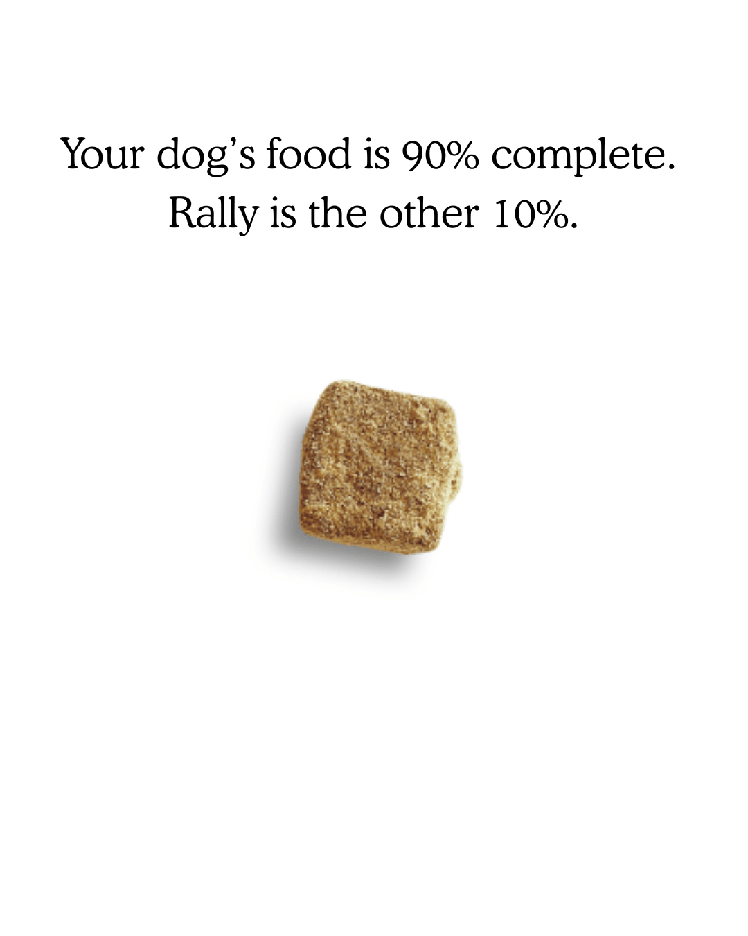 As animal nutritionists, we know that while kibble is the most efficient way to feed, it often lacks the functional ingredients used in elite animal science. We created Rally to fill that specific gap. It’s a high-utility tool that plugs into your current feeding routine to restore the energy and joint support that "bagged food" simply can't provide.